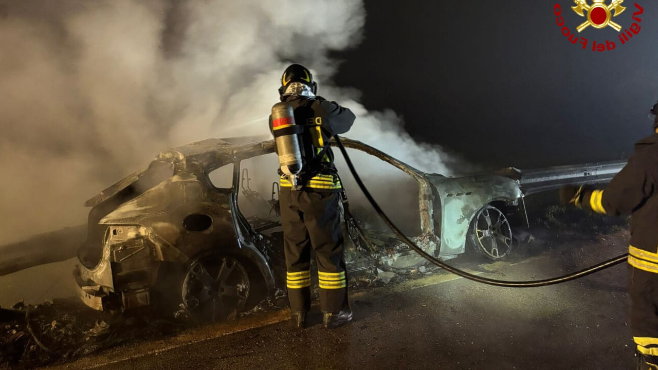 Auto di lusso rubata in fiamme: intervento dei vigili del fuoco nella notte