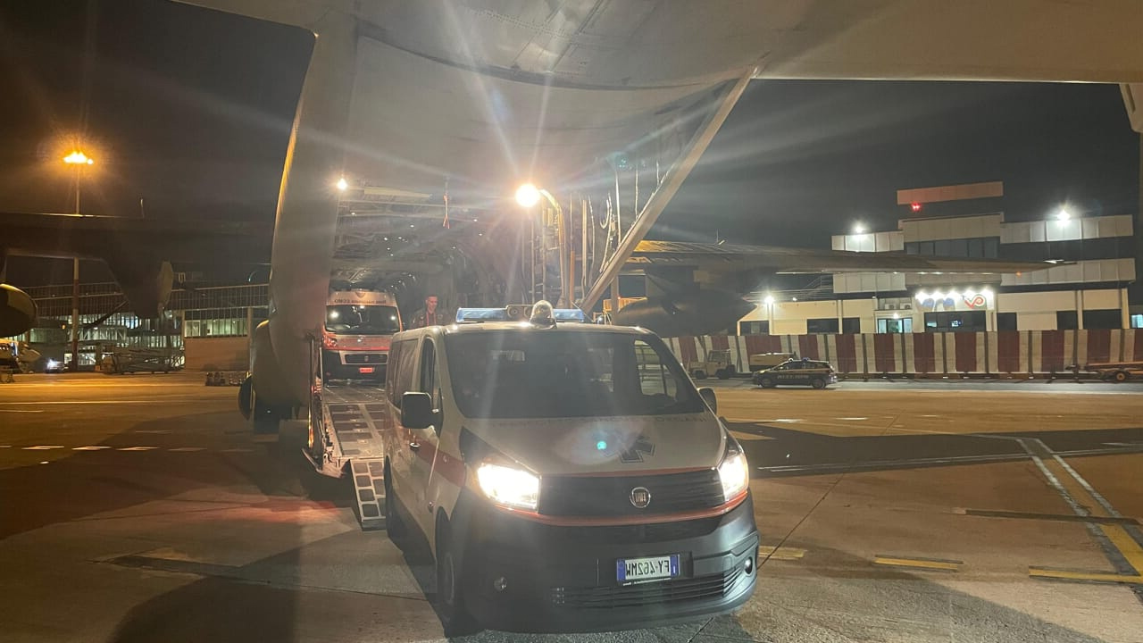 Un aereo C130 dell’Aeronautica Militare ha imbarcato l’ambulanza con a bordo un bimbo, un’automedica e dieci operatori sanitari