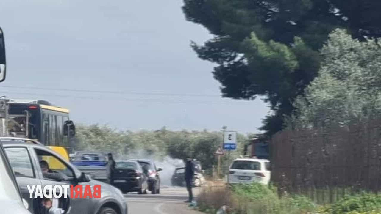 Un veicolo ha preso fuoco spontaneamente lungo la strada che collega Bitonto all’aeroporto, causando notevoli disagi al traffico.