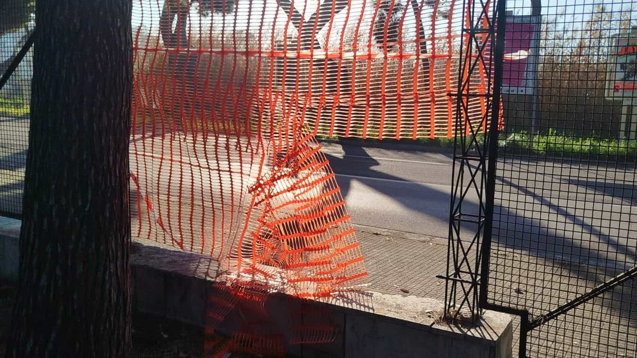 Nei giorni scorsi, le strutture di recinzione, già compromesse dalla ruggine, sono state abbattute. La segnalazione dei residenti ha consentito di prendere misure per garantire la sicurezza dell’area: sono stati messi dei nastri di plastica rossa in sostituzione delle cancellate danneggiate. La parte di recinzione rimossa è stata portata all’interno della pineta. Purtroppo, avvertono i cittadini, anche i nastri temporanei di plastica sono stati manomessi per accedere all’area verde.